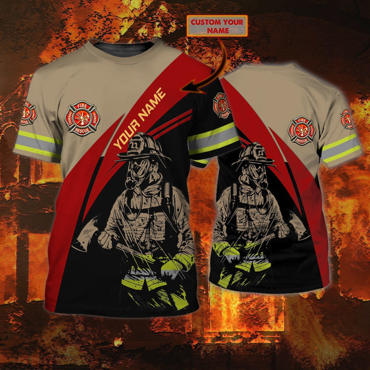 FUNSTUFFPRINT Customized Name 3D Fire Man Shirt, Firefighter Job T-Shirt, Gift For Firefighter Friend, Dad Firefighter Gifts 3D T-shirt