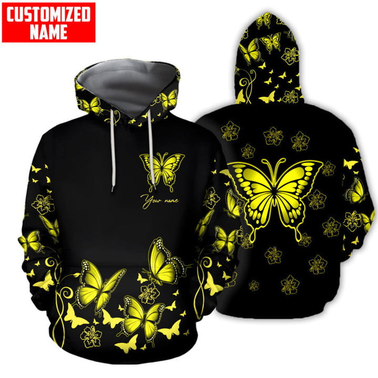 FUNSTUFFPRINT Customized Name Butterfly All Over Printed 3D Hoodie and Zip Hoodie