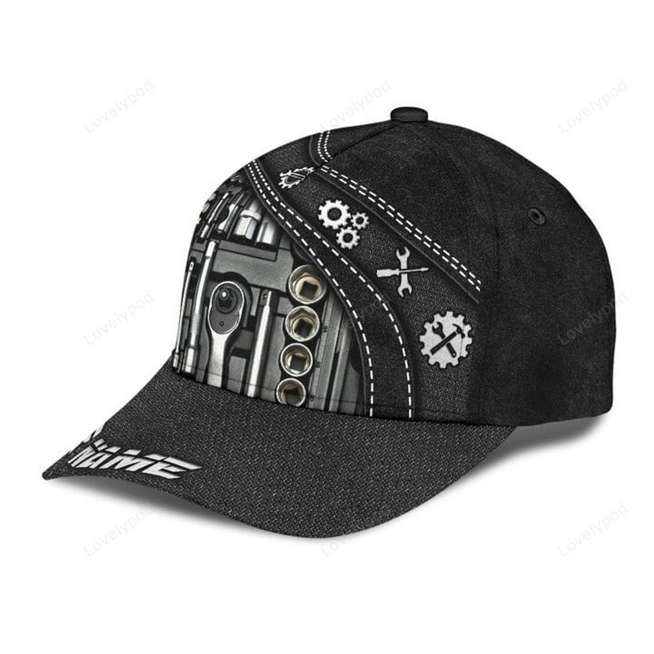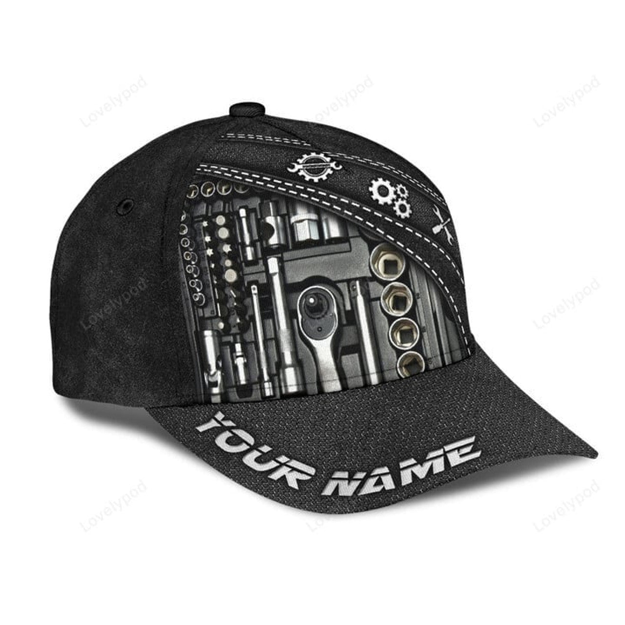 FUNSTUFFPRINT Customized Name Mechanic Printed Classic Cap, Gift for Mechanic