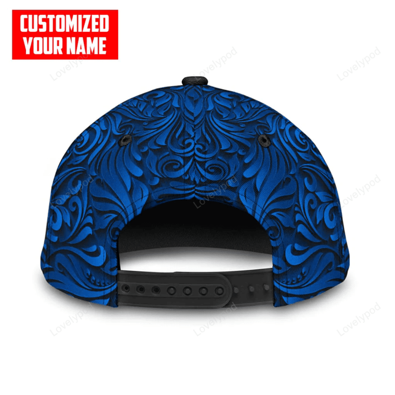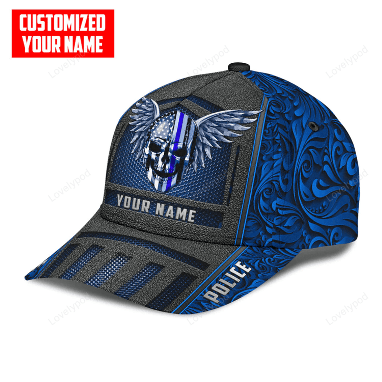 FUNSTUFFPRINT Customized Name Police Skull Classic Cap Blue Skull Baseball Cap Hat