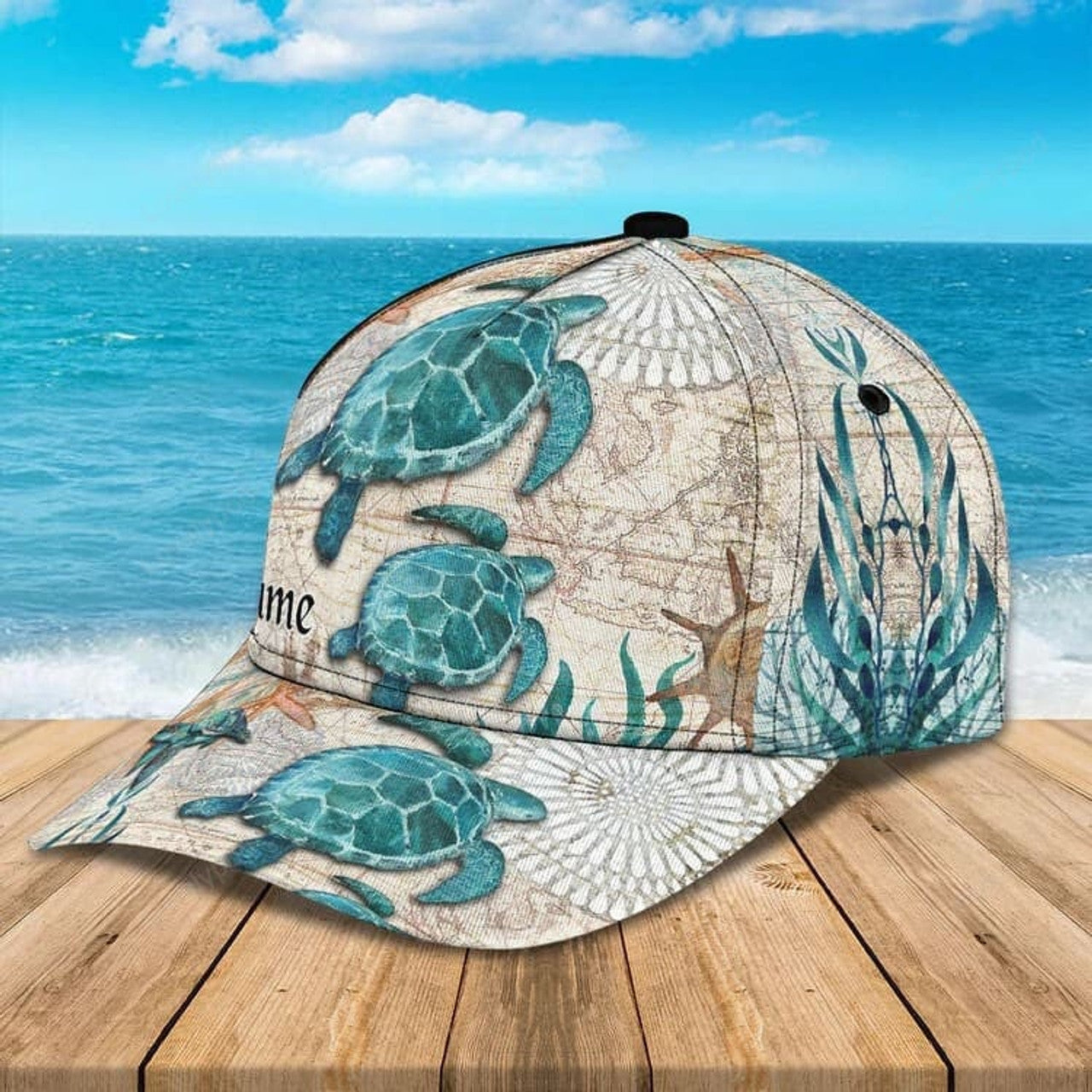 FUNSTUFFPRINT Customized Turtle Art Summer 3D Baseball Cap, Turtle Hat for Husband and Wife