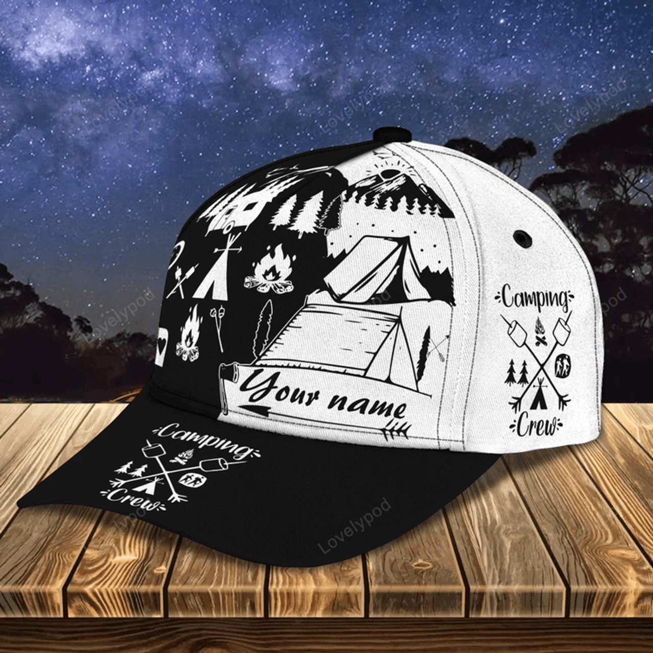 FUNSTUFFPRINT Customized With Name Camping Classic Cap Hat, Baseball Camping Cap Hat, Camp Cap Hat, Camping Gift