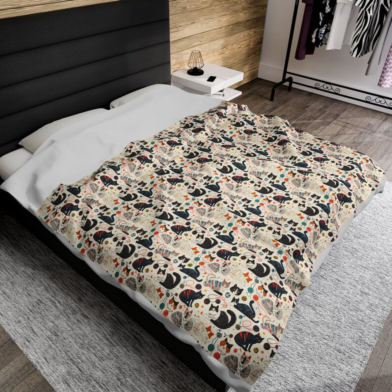 FUNSTUFFPRINT Cute Cat Pattern Velveteen Plush Blanket, soft blanket, cute cute blanket, cat blanket, cat pattern blanket baby blanket pet blanket