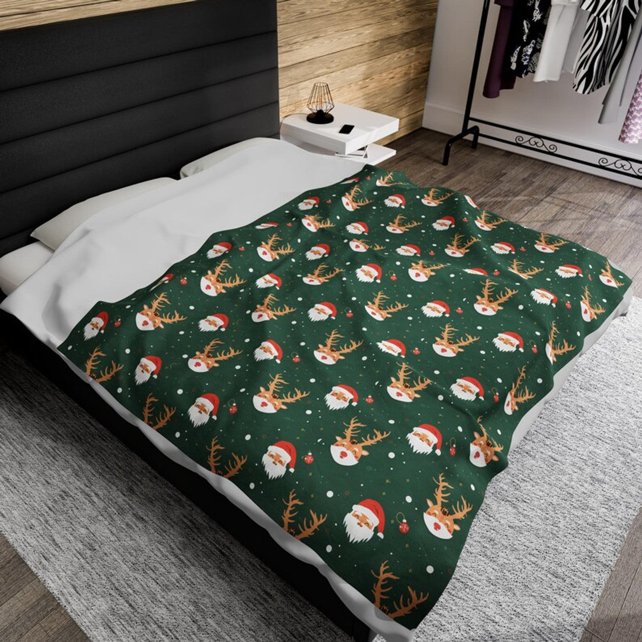 FUNSTUFFPRINT Cute Christmas Blanket Santa Blanket Reindeer Blanket Christmas Gift for Her Kids Blanket Christmas Plush Velveteen Blanket
