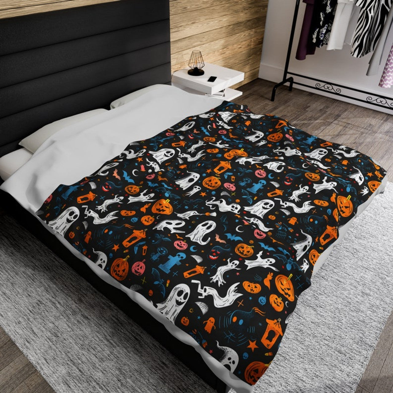 FUNSTUFFPRINT Cute Halloween Blanket Blanket Spooky Blanket Ghosts Pumpkins Magic Candy Halloween Gift for Her Kids Blanket