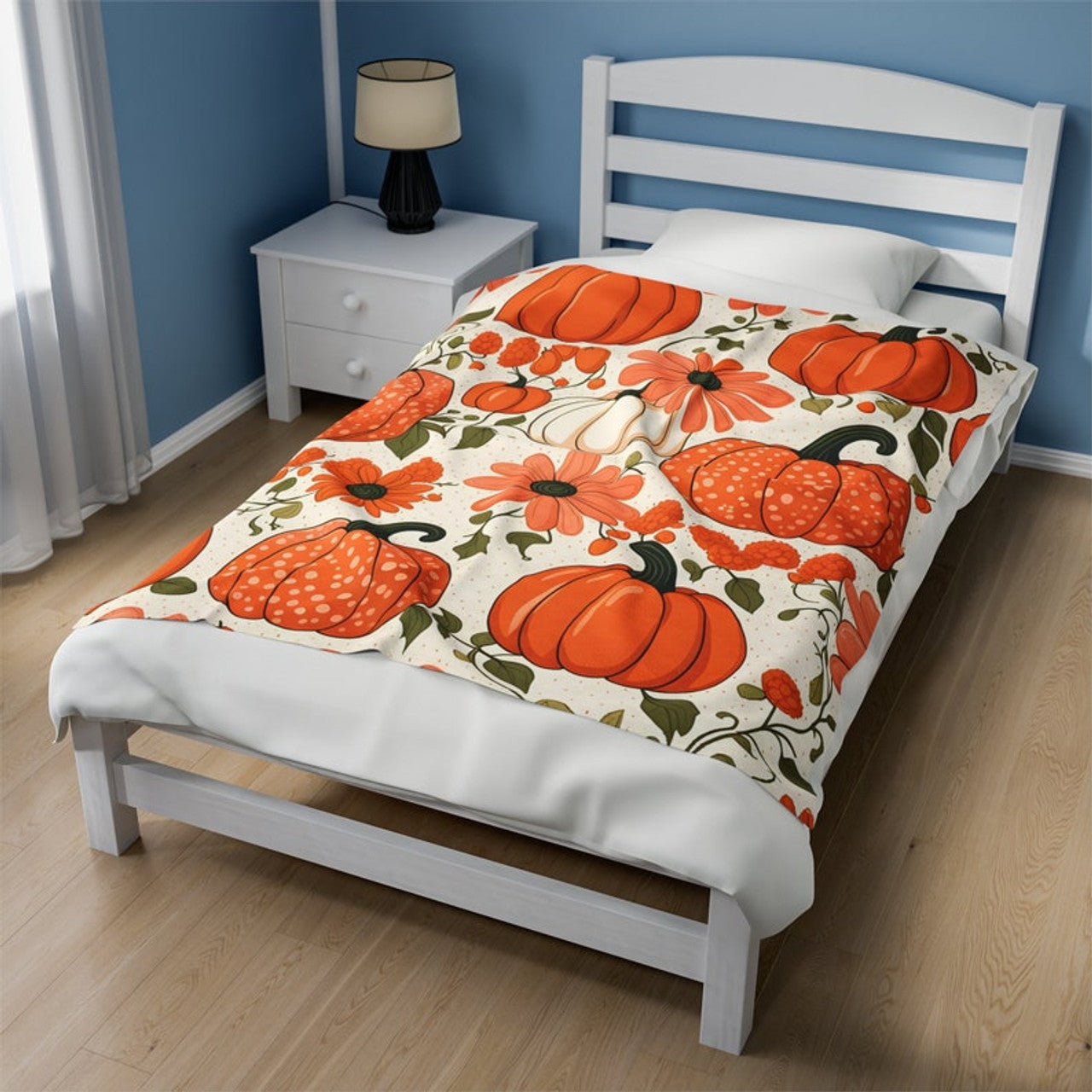 FUNSTUFFPRINT Cute Halloween blanket, pumpkin blanket, Fall blanket, Halloween throw, plush velveteen blanket, Autumn Throw Blanket, Halloween decor