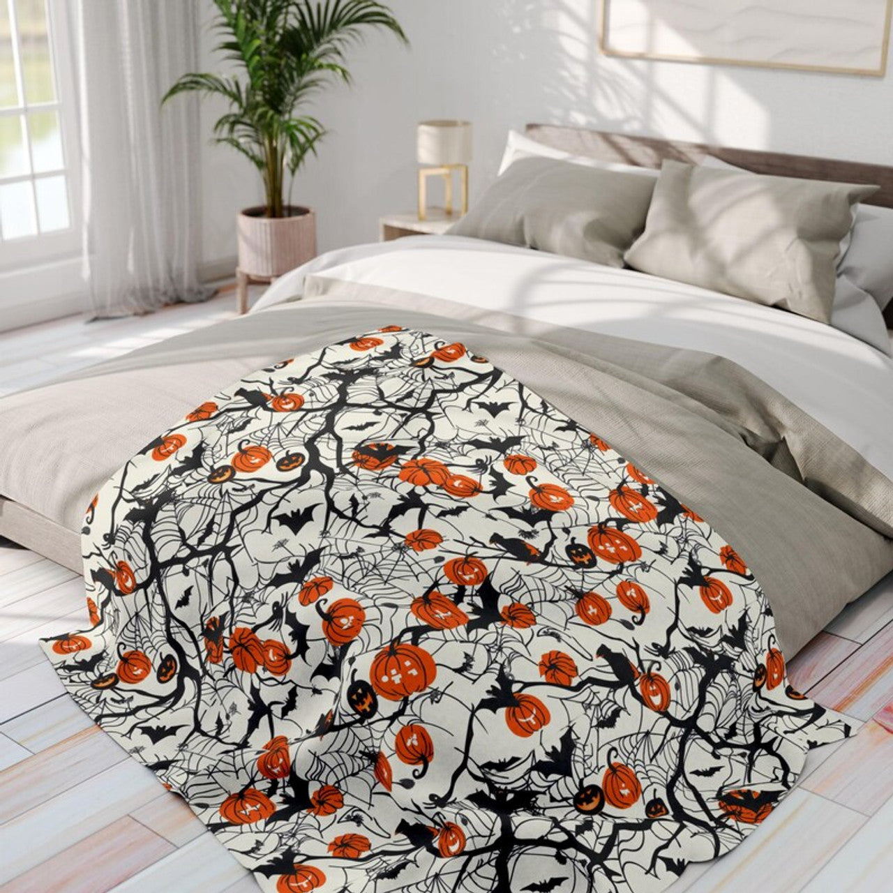 FUNSTUFFPRINT Cute Halloween Blanket Scary Blanket Arctic Fleece Blanket Spooky Blanket Ghosts Pumpkins Magic Candy Corn Halloween Gift for Her
