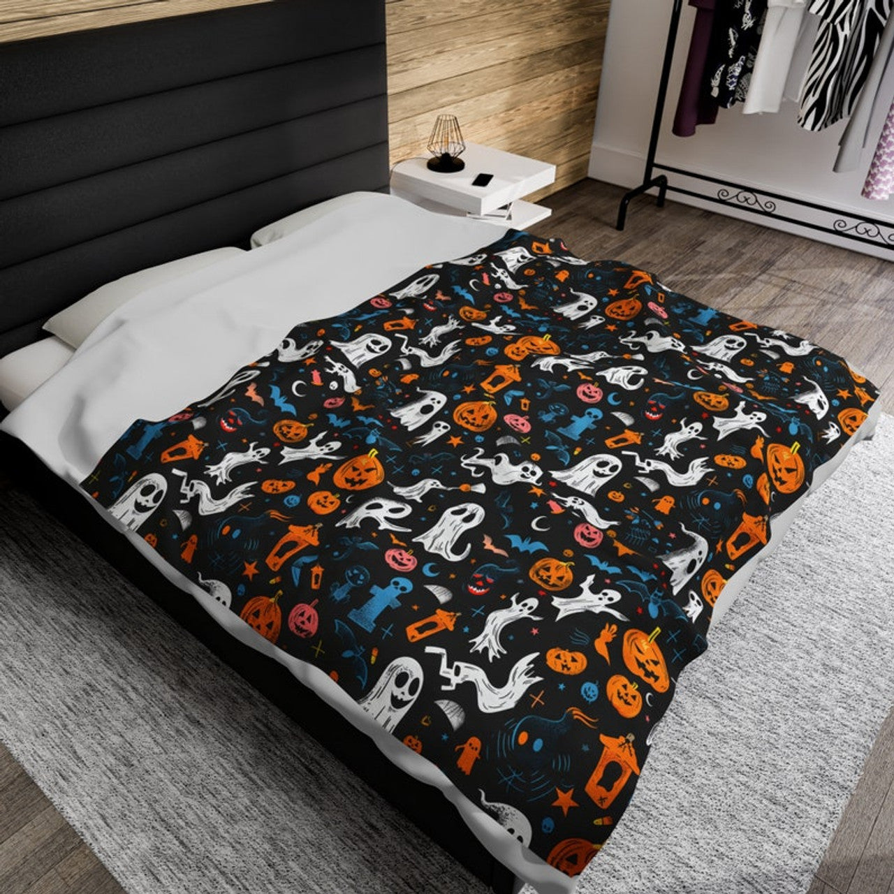 FUNSTUFFPRINT Cute Halloween Blanket Scary Blanket Spooky Blanket Ghosts Pumpkins Magic Candy Corn Halloween Gift for Her Blanket