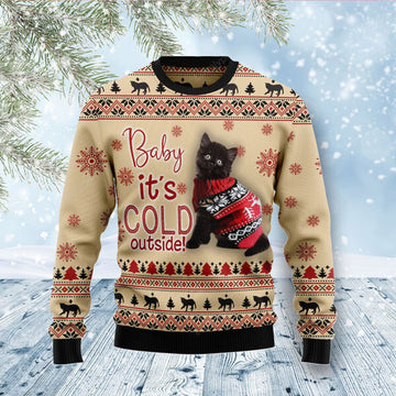 FUNSTUFFPRINT Cute Kitten It's Cold Outside Ugly Christmas Sweater For Women & Men - Adult - Couples - Gift for Cat Lovers Ugly Sweater
