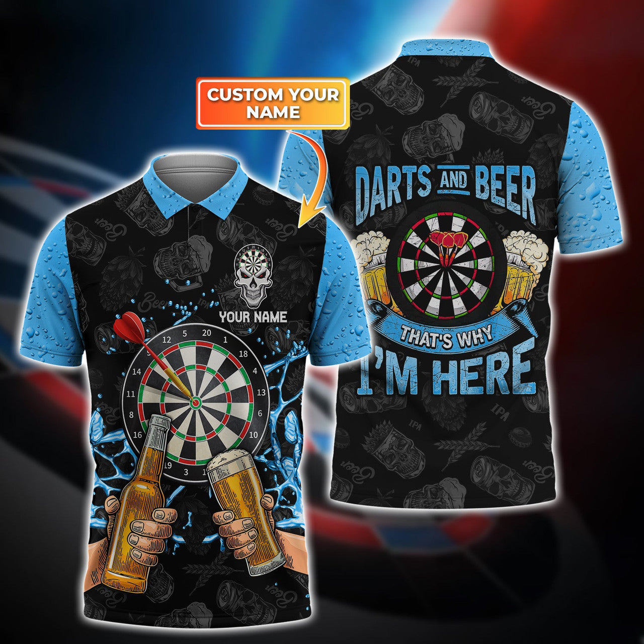 FUNSTUFFPRINT Darts And Beer (Blue) - Personalized Name 3D All Over Print Polo Shirt Size S-5XL