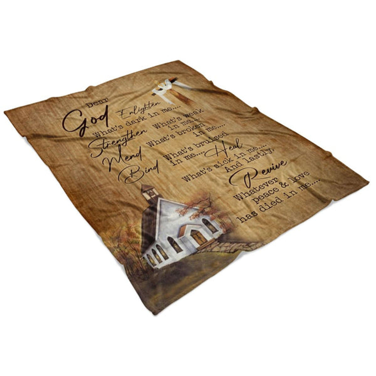 FUNSTUFFPRINT Dear God Enlighten What's Dark In Me Fleece Blanket - Christian Blanket - Bible Verse Blanket
