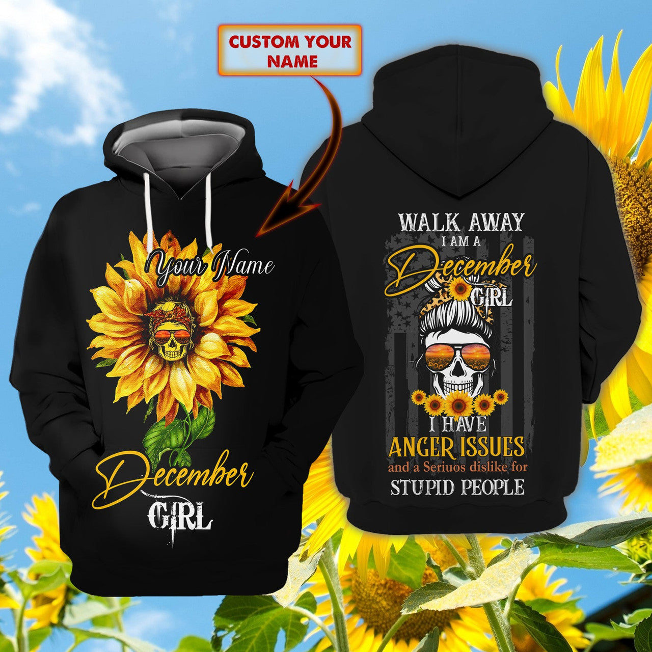 FUNSTUFFPRINT December Girl Skull - Personalized Name 3D Hoodie and Zip Hoodie