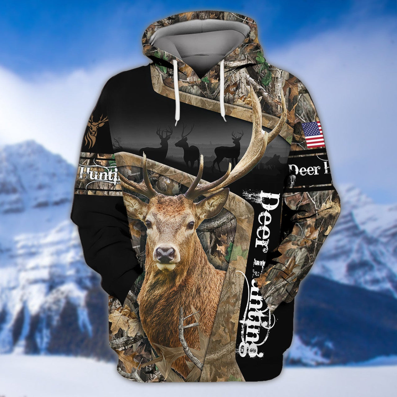 FUNSTUFFPRINT Deer Hunting America Flag 3D Hoodie and Zip Hoodie