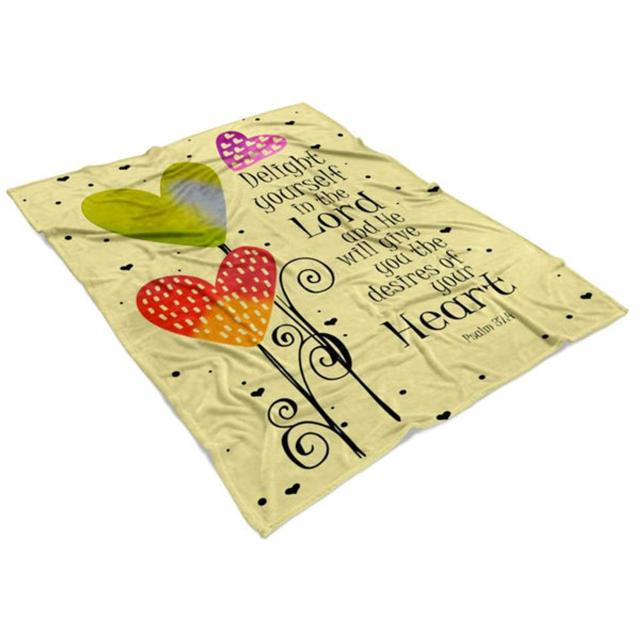 FUNSTUFFPRINT Delight Yourself In The Lord Psalm 374 Fleece Blanket - Christian Blanket - Bible Verse Blanket
