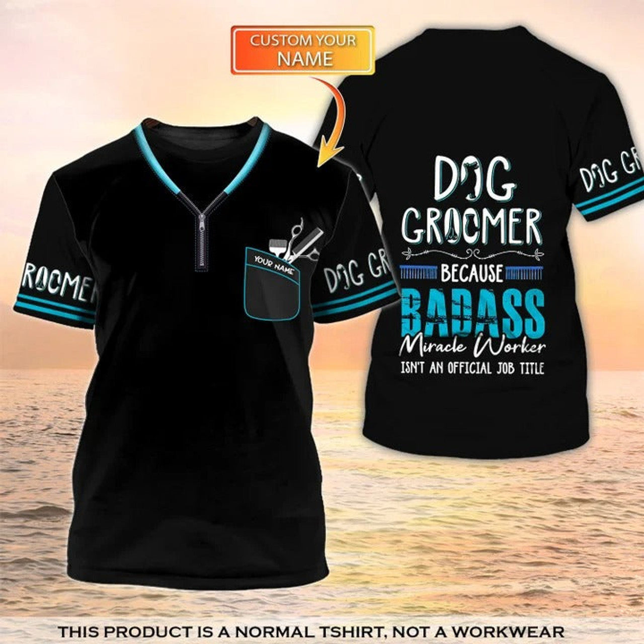 FUNSTUFFPRINT Dog Groomer 3D T-Shirt Grooming Badass Custom Shirts Pet Salon Uniform Black 3D T-shirt