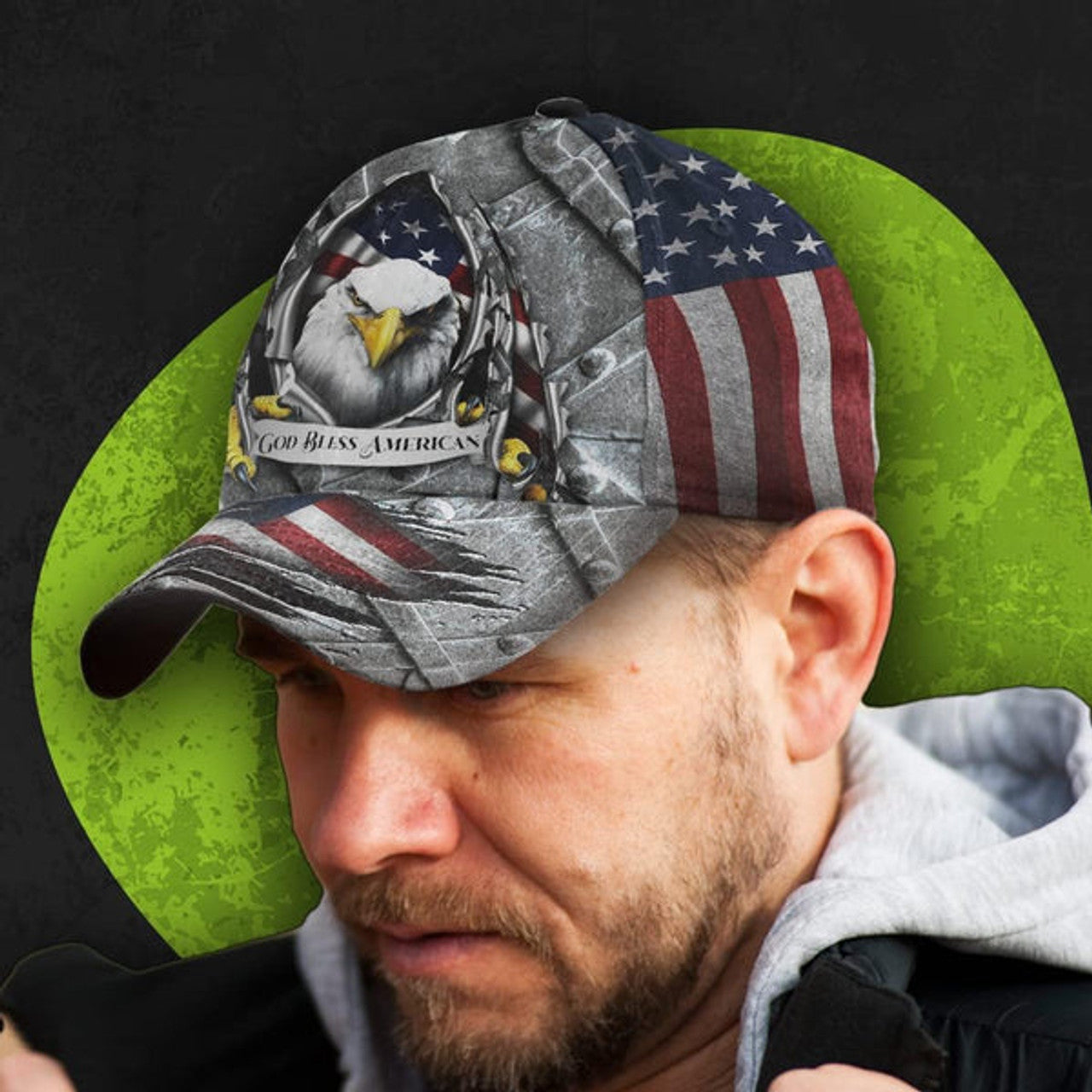 FUNSTUFFPRINT Eagle God Bless America Baseball Cap - Christian Hats for Men and Women