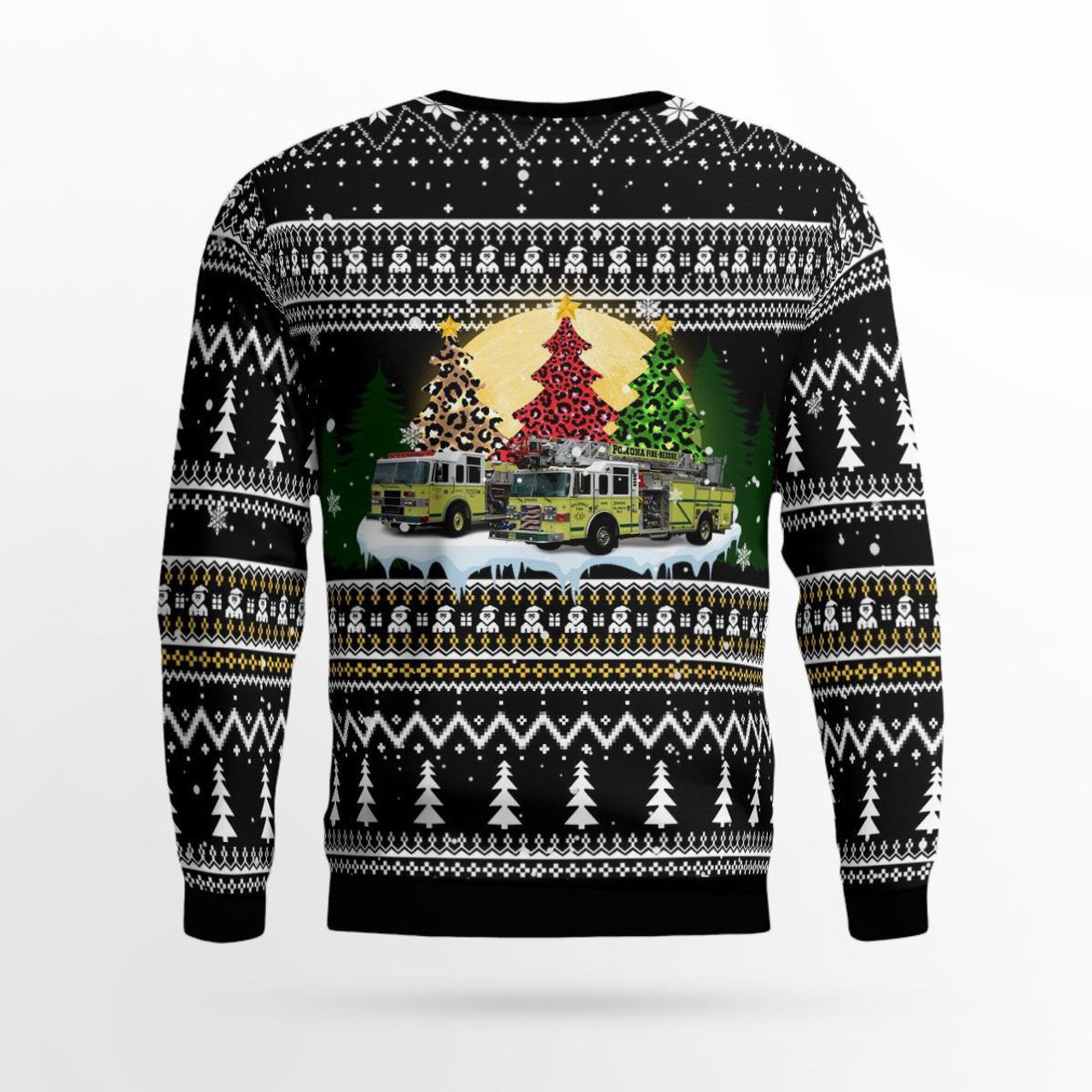 FUNSTUFFPRINT Egg Harbor City, NJ, Galloway Township Fire Department Pomona Volunteer Fire Company No.3 Christmas Ugly Sweater 3D - Gifts For Firefighters In NJ Ugly Sweater