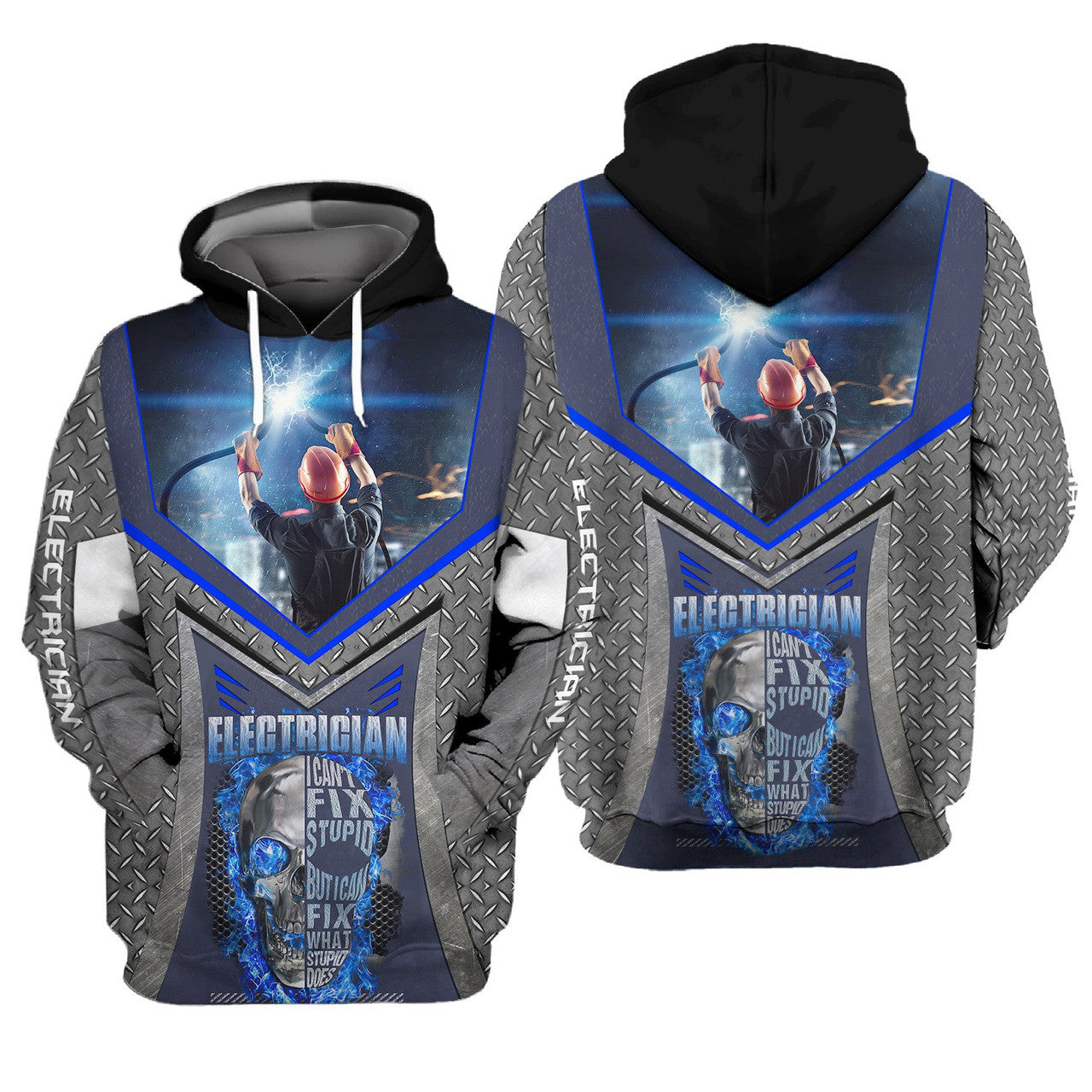 FUNSTUFFPRINT Electrician I Can't Fix Stupid But I Can Fix Whay Stupid Does 3D Hoodie and Zip Hoodie