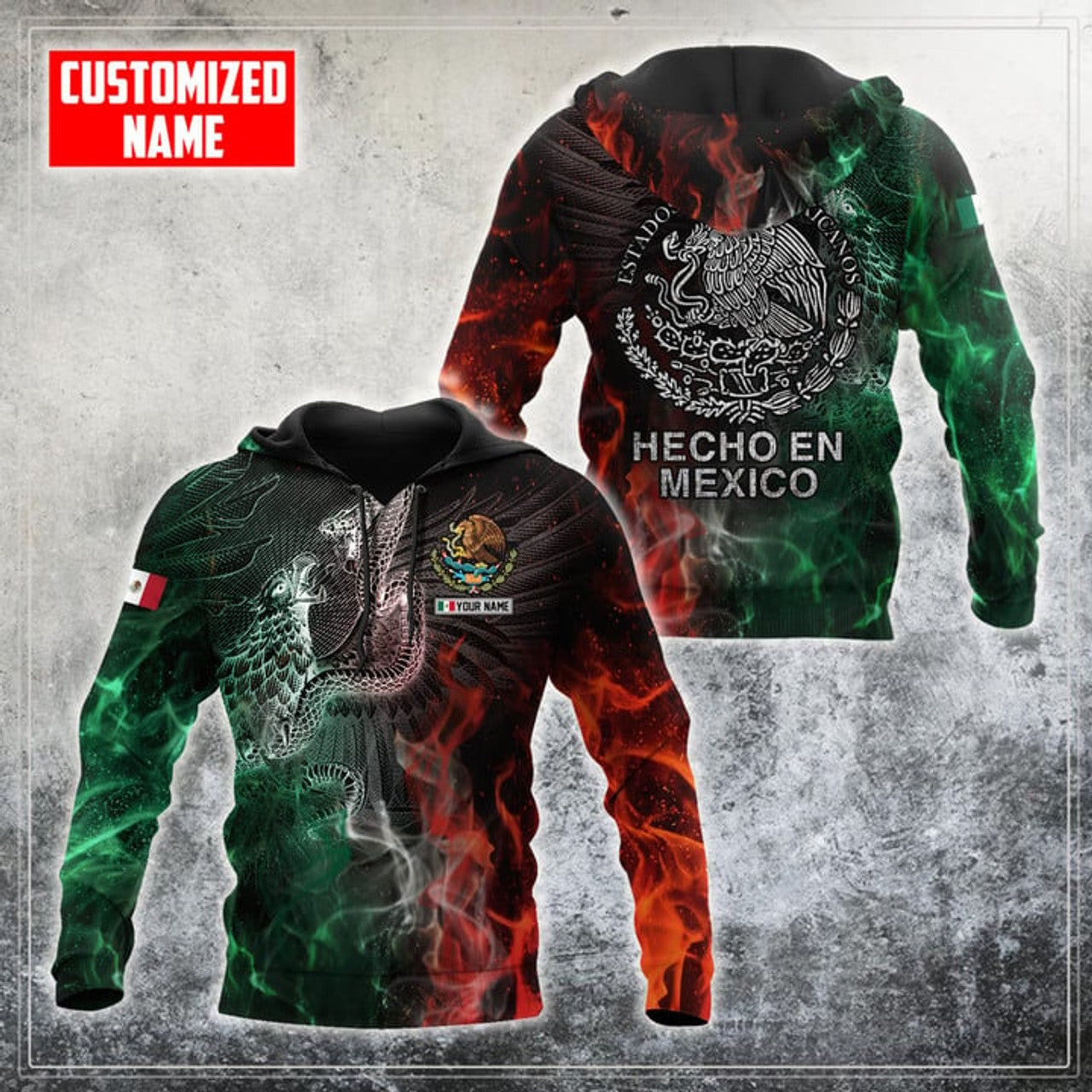 FUNSTUFFPRINT ersonalized Mexico Eagle Fire 3D Hoodie and Zip Hoodie