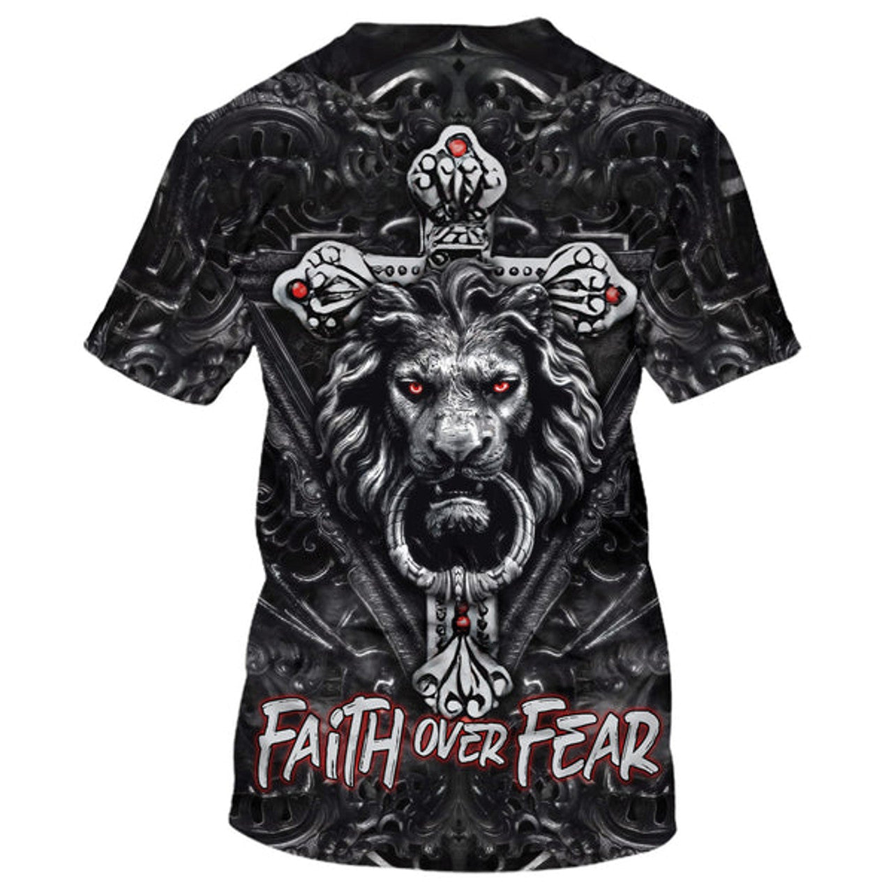 FUNSTUFFPRINT Faith Over Fear Gothic Lion Black 3D All Over Printed Shirt for Men and Women 3D T-shirt