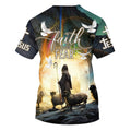 FUNSTUFFPRINT Faith Over Fear Jesus And Sheep Christian 3D T-shirt