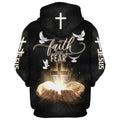 FUNSTUFFPRINT Faith Over Fear Jesus Gods Hand Christian Cross 3D Hoodie and Zip Hoodie