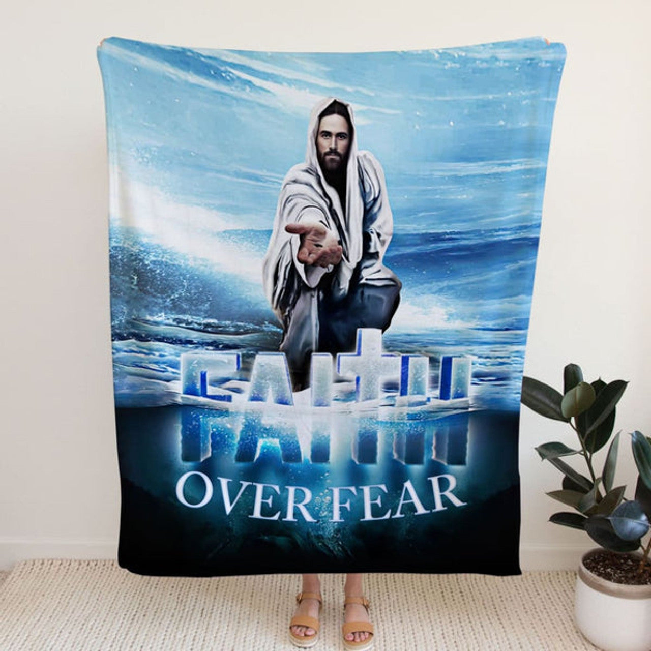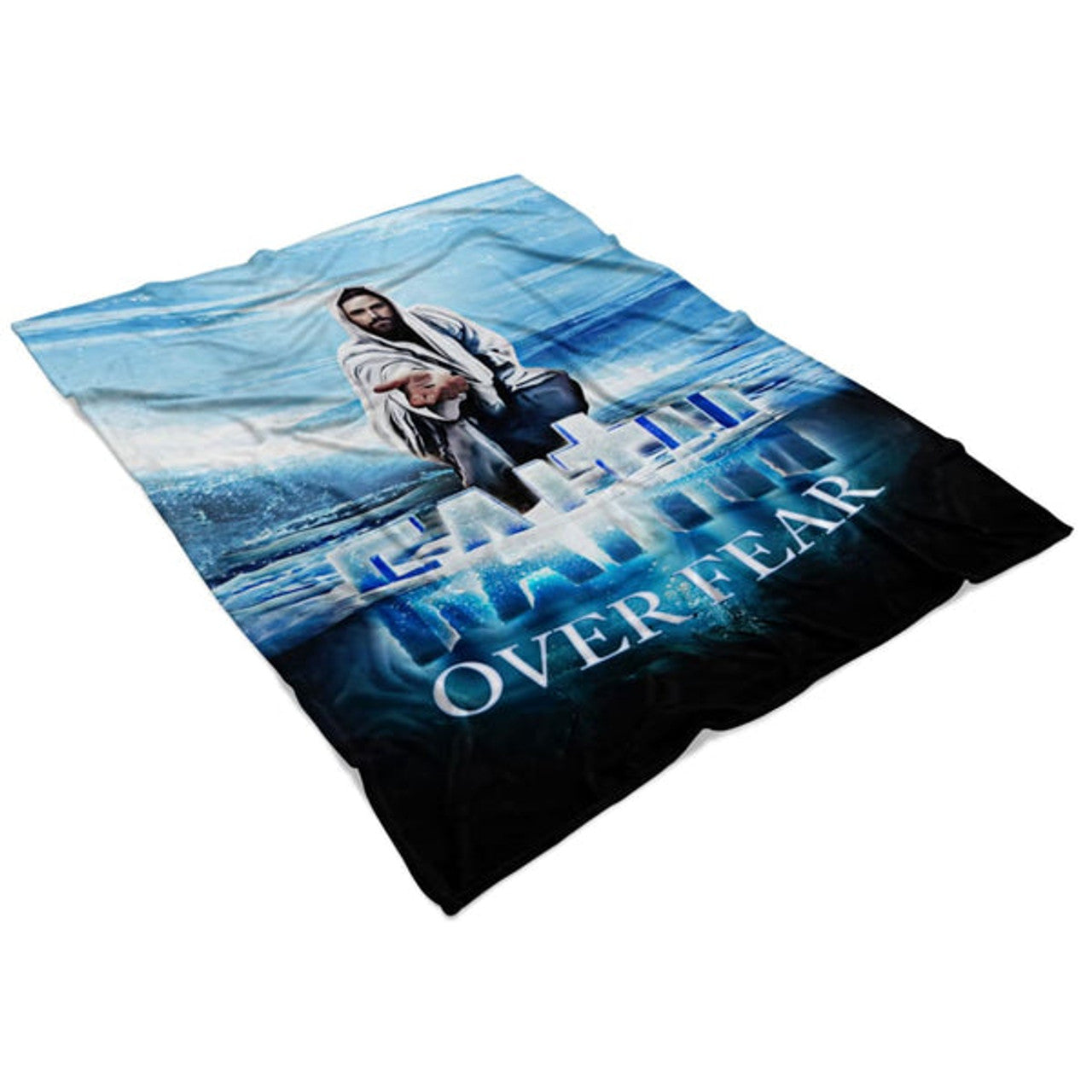 FUNSTUFFPRINT Faith Over Fear Jesus Hands Reaching Out Fleece Blanket - Christian Blanket - Bible Verse Blanket