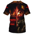 FUNSTUFFPRINT Faith Over Fear Lion Cross Christian 3D T-shirt