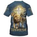 FUNSTUFFPRINT Faith Over Fear Lion Cross 3D All Over Printed Shirt for Men and Women 3D T-shirt