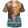 FUNSTUFFPRINT Faith Over Fear Lion Jesus Walking On The Water Christian 3D T-shirt