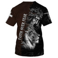 FUNSTUFFPRINT Faith Over Fear Shirts - Jesus And The Lion Of Judah 3D All Over Printed Shirt for Men and Women 3D T-shirt