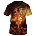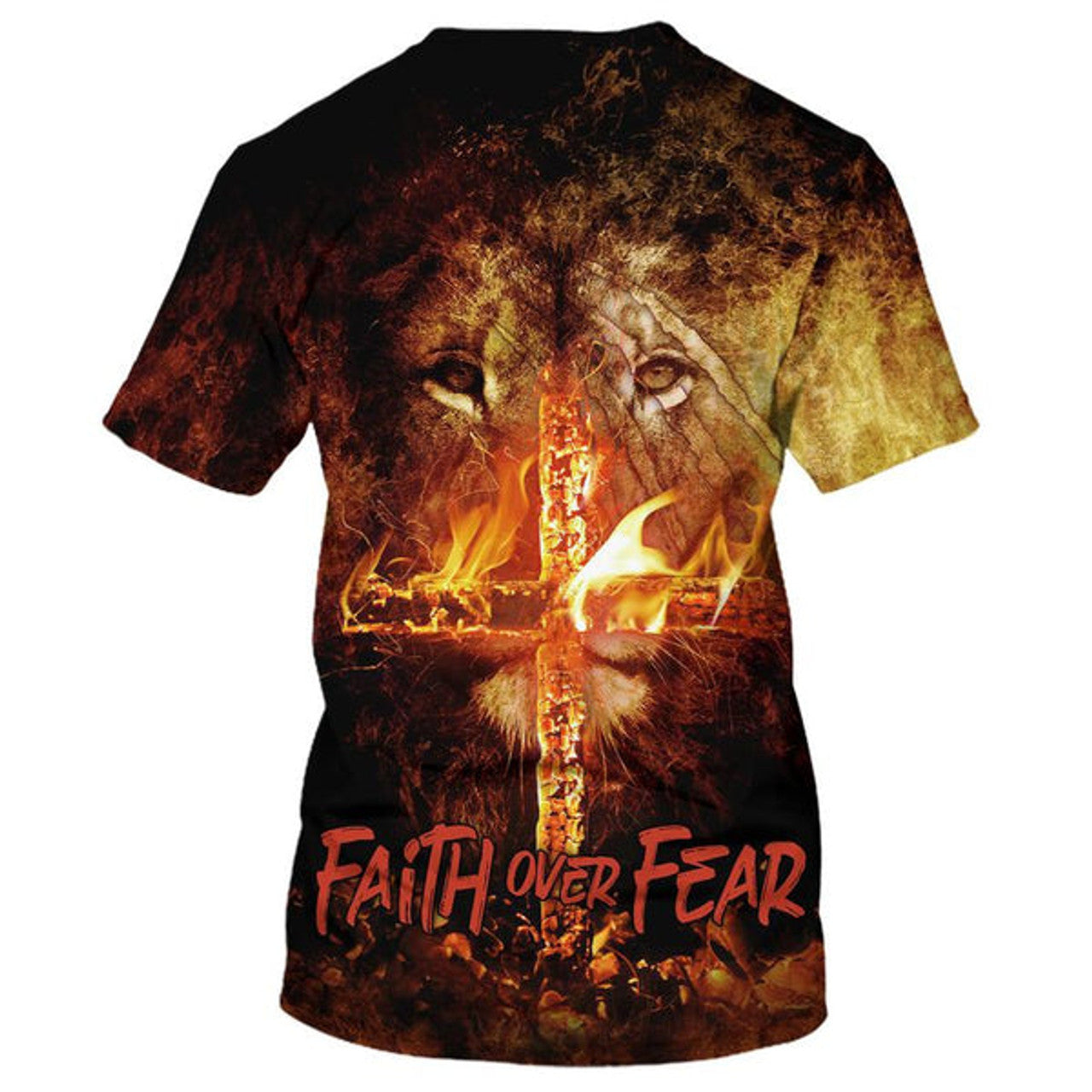 FUNSTUFFPRINT Faith Over Fear Shirts - Lion Burning Fire Cross 3D All Over Printed Shirt for Men and Women 3D T-shirt