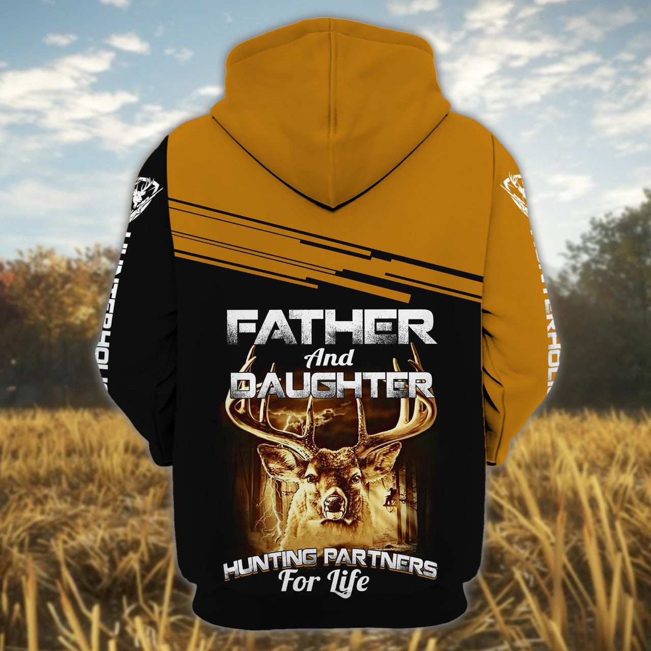 FUNSTUFFPRINT Father And Daughter Hunting Partners For Life Personalized Name 3D Hoodie and Zip Hoodie