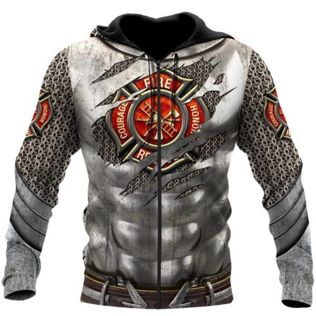 FUNSTUFFPRINT Firefighter 3D Hoodie Armor Firefighter 3D Hoodie and Zip Hoodie