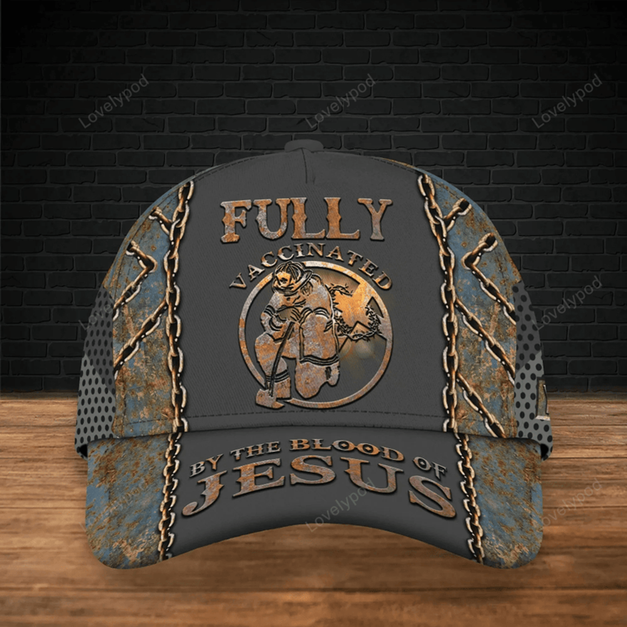 FUNSTUFFPRINT Firefighter Jesus Firefighter Cap Personalized Jesus Gift, Fully Vaccinated By The Blood Of Jesus Cap