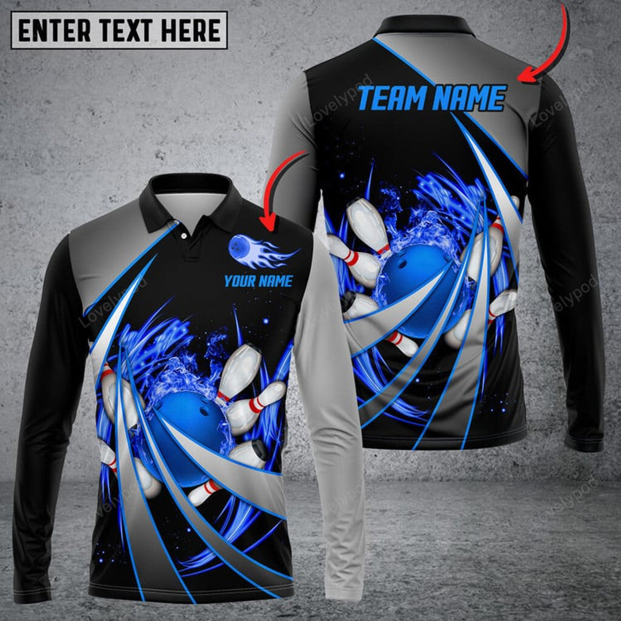FUNSTUFFPRINT Flame Bowling And Pins Tornado Pattern Multicolor Option Customized Name Long Sleeve 3D Shirt