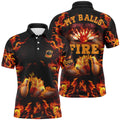 FUNSTUFFPRINT Flame bowling shirt custom name my balls are on fire bowling polo shirts for men Polo Shirt Size S-5XL