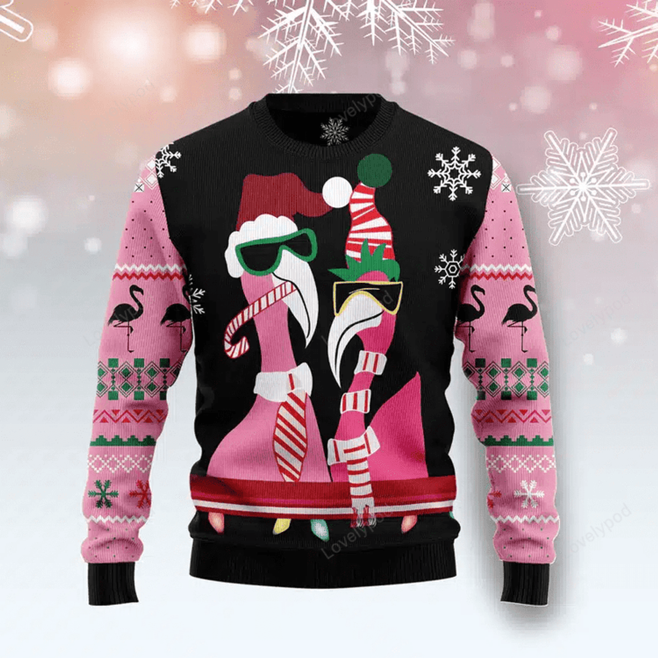 FUNSTUFFPRINT Flamingo Candy Cane Ugly Christmas Sweater for men and women Ugly Sweater