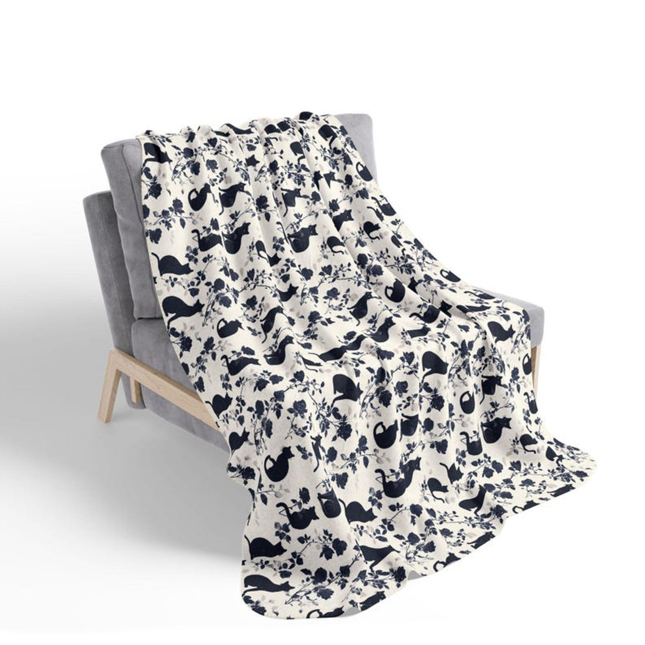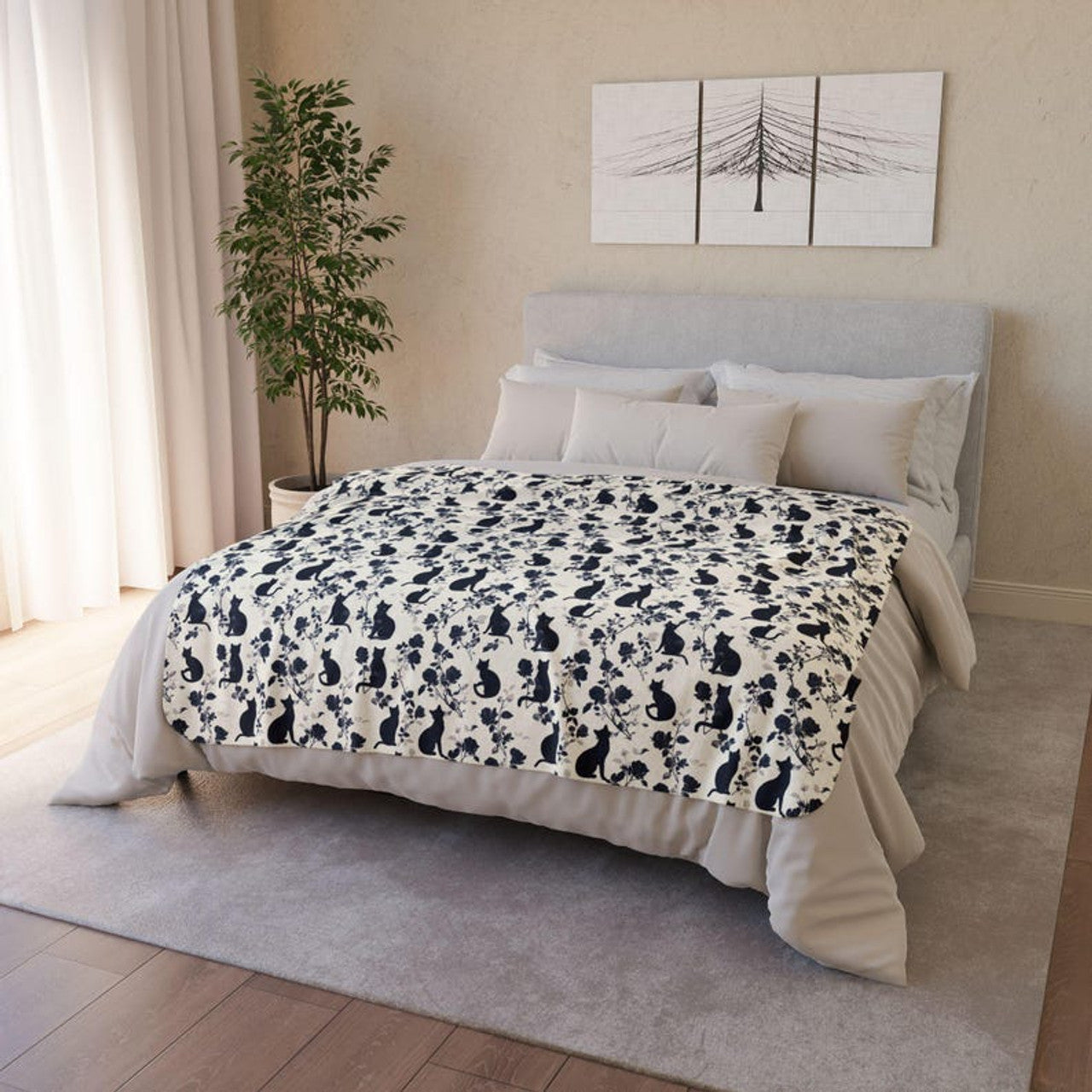 FUNSTUFFPRINT Floral Black Cat Sherpa Blanket - Soft Cozy Throw for Kids & Adults - Home Decor - Cute Cate Blanket Gift by