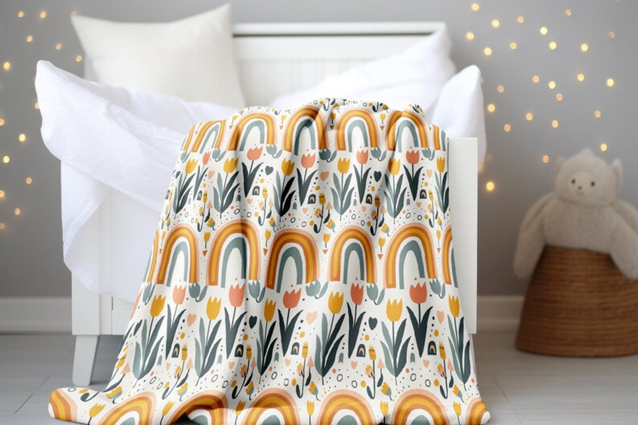FUNSTUFFPRINT Flowers and Rainbows Blanket, Baby Girl Blanket, Baby Boho Keepsake, Baby Shower Gift, Mom Gift, Baby Girl Blanket, Childrens Kids Blankets
