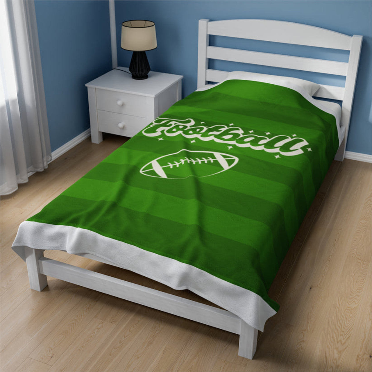 FUNSTUFFPRINT Football Field Velveteen Plush Blanket