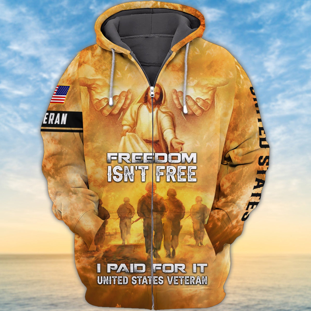 FUNSTUFFPRINT Freedom Isn't Free, Veteran U.S 3D Hoodie and Zip Hoodie