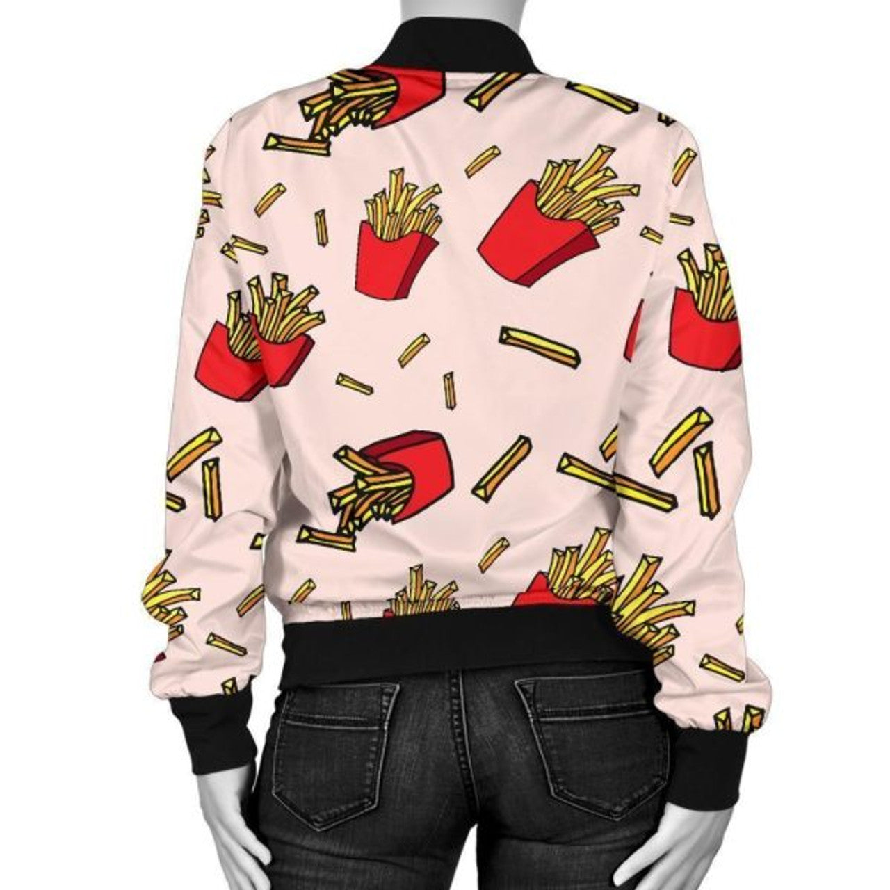 FUNSTUFFPRINT French Fries Pattern Print Women Casual Bomber Jacket