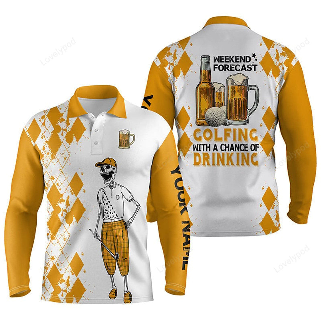 FUNSTUFFPRINT Funny Golf beer skull Men golf polos shirts, custom Weekend forecast golfing with a chance of drinking