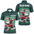 FUNSTUFFPRINT Funny Green Santa Bowling polo, Custom bowling uniforms Christmas Polo Shirt Size S-5XL