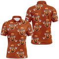 FUNSTUFFPRINT Funny Halloween Boo pumpkin Disc golf pattern Mens golf polo shirt custom Halloween mens golf Polo Shirt Size S-5XL