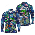 FUNSTUFFPRINT Funny Men Golf Polo Shirt, Custom Blue Tropical Flower Dinosaur Golf Shirts Back Nines Matter