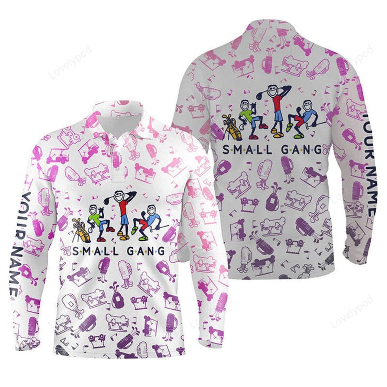FUNSTUFFPRINT Funny Men golf polo shirt, gradient neon golf custom name small gang golf team shirts