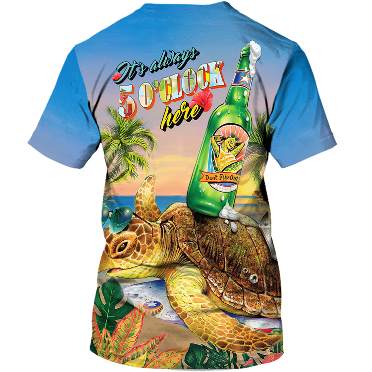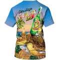 FUNSTUFFPRINT Funny Turtle Beer Summer 3D Shirt, Turtle On The Beach Vacation Shirts For Men Women, Beer Turtle Shirt 3D T-shirt