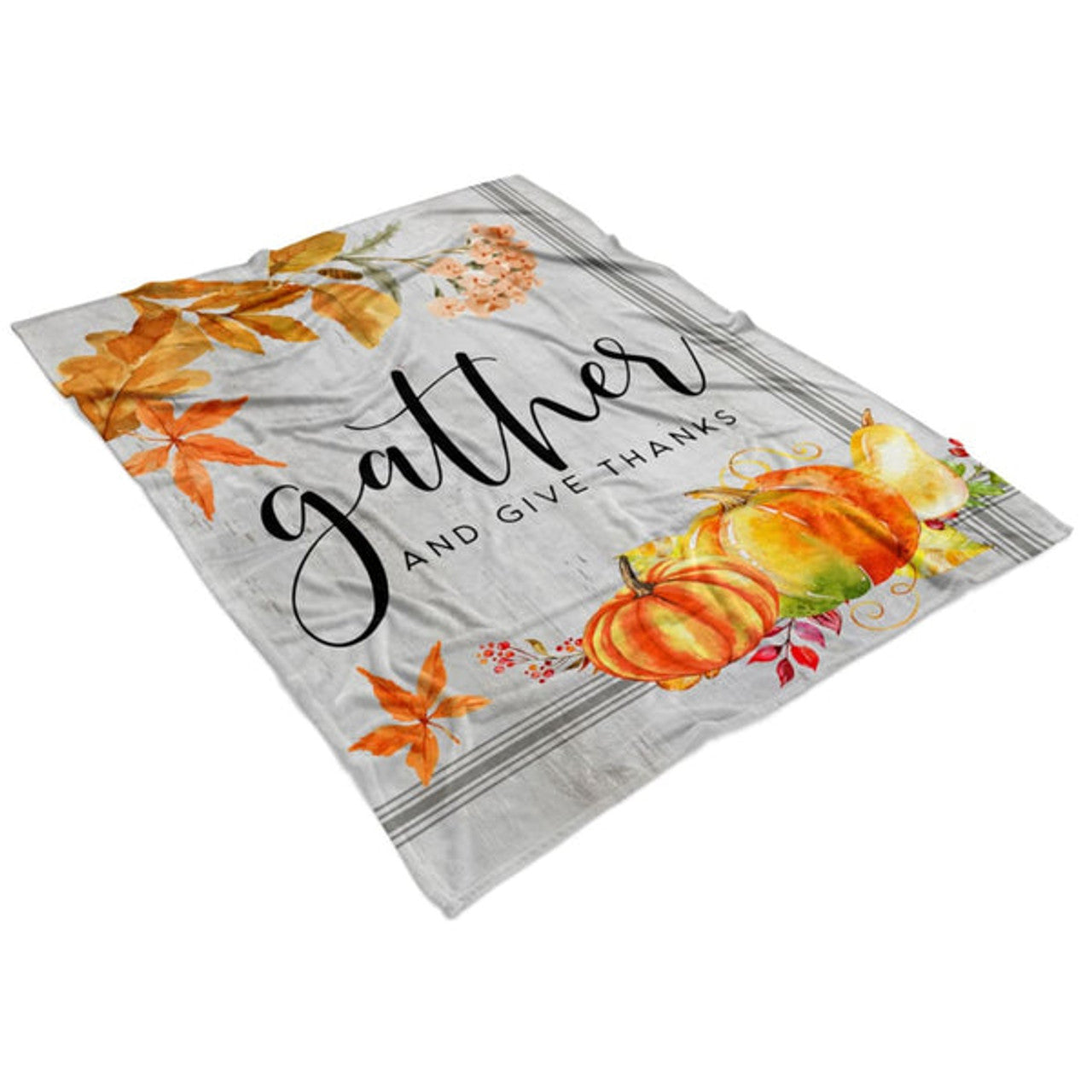 FUNSTUFFPRINT Gather And Give Thanks Fleece Blanket - Christian Blanket - Bible Verse Blanket